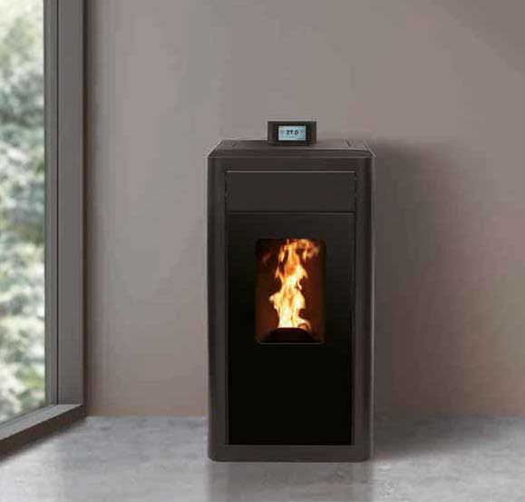 Le poêle à granulés peut être utilisé à sa puissance maximale tout en maintenant une vitesse de ventilation minimale. Il dispose d’un échangeur corps de chauffe en fonte, d’un brasero en fonte et d’un réservoir de 23 kg. Son poids de 160 kg (dont un tiers en fonte) évite toute vibration et augmente sa longévité. Il est doté d’une technologie de pointe (régulation Fumis) et d’un écran tactile.